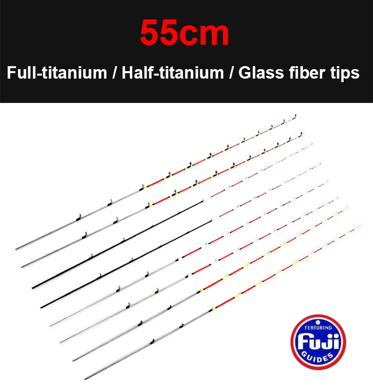 2pcs 55cm Tip for Boat/Raft Rod Full/Half Titanium alloy fishing rod Glass fiber tips Micro lead ra
