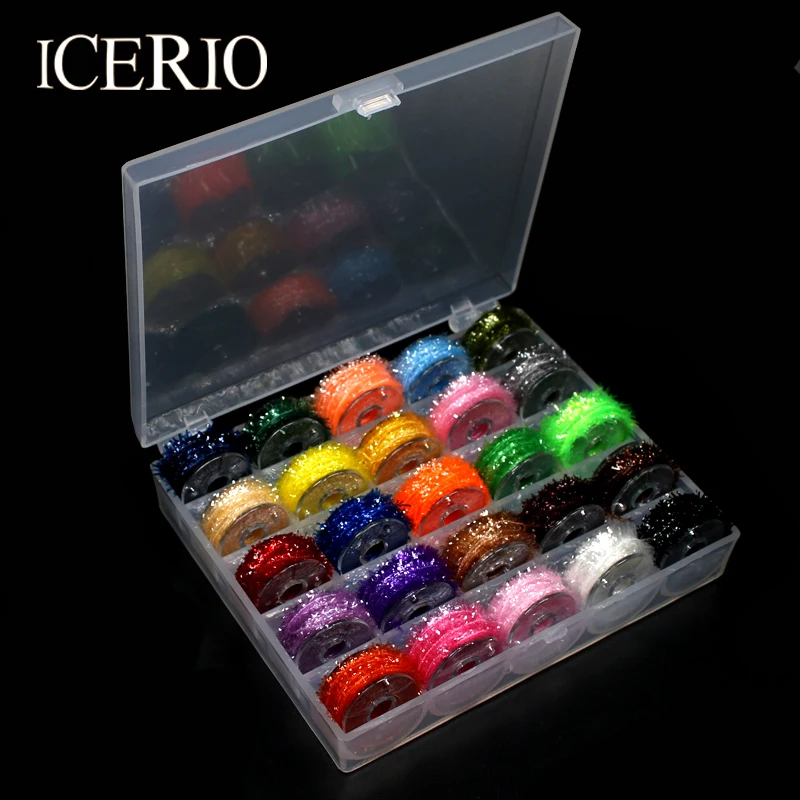 ORIGINAL ICERIO 25 Colors 5m/reel Fly Tying Tinsel Chenille Material for Streamer Lures Crystal Flash Dubbin