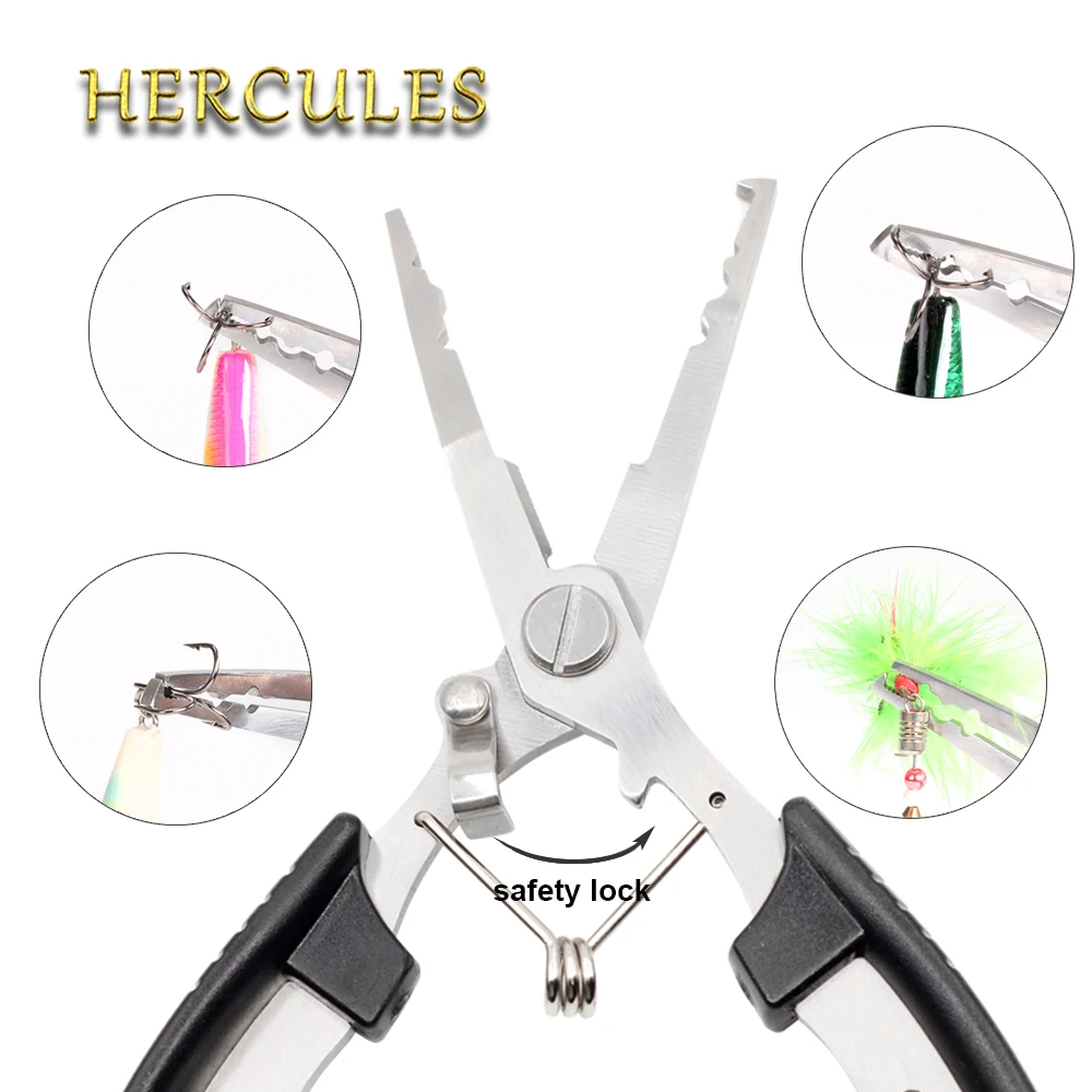 TOP Multipurpose Fishing Pliers Aluminum Fish Hook Remover Split Ring Cutters with Retention Rope and S